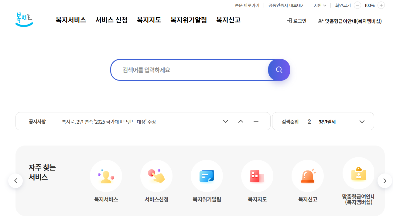 - 주소지 주민센터 방문 또는 복지로 사이트 접속